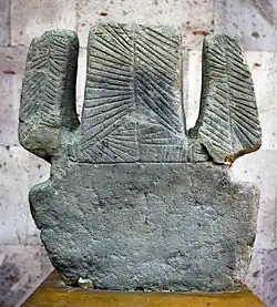 En Urartu estaba ampliamente extendido el símbolo del disco alado cuyas representaciones se han encontrado también en Mesopotamia, el Antiguo Egipto y el reino hitita. En Urartu el disco alado normalmente representaba al dios del Sol Shivini, si bien también se puede observar en otros contextos mitológicos. Las representaciones del disco alado en Urartu estaban con frecuencia relativamente estilizadas y no contenían tantos detalles como las imágenes egipcias o mesopotámicas. Las imágenes urartianas del disco alado se situaban más cerca de las de los hititas y el tema mitológico era el propio de los asirios.[29]