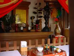 La religión tradicional china (también conocida como religión popular china, religión tradicional Han[35] o shenismo[36]) es la religión propia y autóctona de China. Comprende un rango de prácticas tradicionales de los chinos han, incluyendo la diáspora china. Es una religión politeísta y con ciertos elementos del chamanismo, profundamente influenciada por el budismo, el confucianismo y el taoísmo. Vivienne Wee ha descrito a esta religión como «una taza vacía, que puede ser diversamente llenada con los contenidos de religiones institucionalizadas como el budismo, el taoísmo, el confucianismo y religiones sincréticas chinas».[37] Esto incluye la veneración de shen (espíritus) y antepasados.[38]Se rinde culto a deidades e inmortales, que pueden ser deidades de lugares o fenómenos naturales, del comportamiento humano, o fundadores de linajes familiares. Historias sobre estos dioses están recopiladas en el corpus de la mitología china. Para tiempos de la dinastía Song (960–1279), estas prácticas se habían sincretizado con doctrinas budistas, confucianistas y taoístas para formar el sistema religioso popular que ha perdurado de muchas maneras hasta la actualidad.[39]