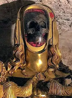Esta y otras reliquias de la santa son sacadas en procesión cada 22 de julio, día de su festividad, colocándose una máscara dorada sobre la cápsula de cristal bajo la que se halla la calavera con el fin de protegerla.[3]