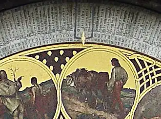 - El calendario circular con medallones que representan los meses del año.