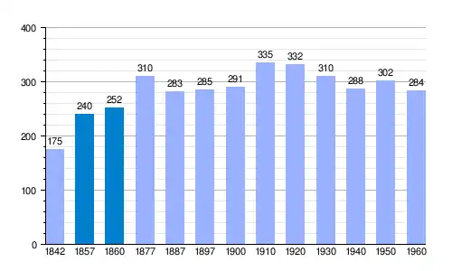 | Gráfica de evolución demográfica de Renales[3] entre 1842 y 1960 |