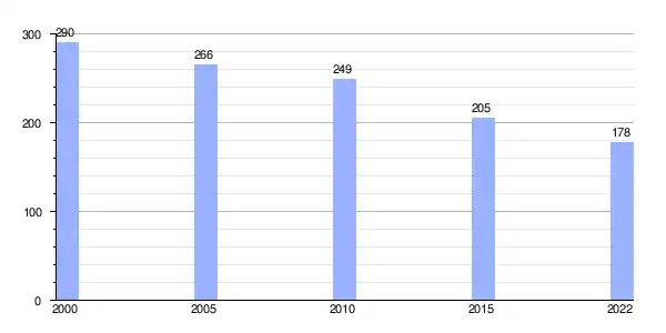 | Gráfica de evolución demográfica de Requiás (lugar) entre 2000 y 2022 |