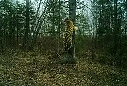 ![]() Un tigre siberiano captado por una cámara trampa en la Reserva natural de Bastak | ||