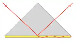 donde k( ) es el vector de onda, es la permitividad relativa, y es la permeabilidad relativa del material (1: el bloque de vidrio, 2: la película metálica), mientras que es la frecuencia angular y es la velocidad de la luz en el vacío. [7]