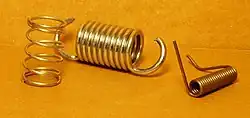 - Resorte de torsión: cualquier resorte diseñado para ser torcido en lugar de comprimido o extendido.[15] Usado en los sistemas de suspensión de vehículos como barras de torsión.