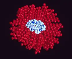 ![]() Modelo computarizado de las moléculas de perflubron y gentamicina en suspensión líquida para la administración pulmonar | ||