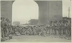 ![]() Tropas republicanas que luchan por retomar la Ciudad Prohibida el 12 de julio de 1917, después del intento de restauración imperial de Zhang Xun. | ||||