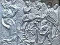 El elemento más destacado del conjunto son las tres placas ubicadas en la zona inferior de la sección correspondiente al deambulatorio; en ellas se representa el martirio y la traslación de las reliquias de Santa Eufemia, cuya hagiografía figura en la Historia de Don Servando. De acuerdo con un resumen de Hervella Vázquez: