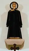 Un epígrafe en la base identifica la imagen, ya de por sí reconocible por la vestimenta y la fisionomía. Se presume que la figura ya se encontraba en la iglesia en la década de 1950,[4]: 90 por lo que debió elaborarse en los años 1940.[2]: 448 | ![]() |
