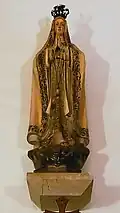 La figura muestra la típica iconografía de esta devoción mariana: ropajes de color claro, manos juntas en actitud orante, corona y rosario. Se sabe que una imagen bajo esta advocación se encontraba ya en la iglesia en la década de 1950,[4]: 91 siendo muy probable que dicha imagen se corresponda con la actual. | ![]() |