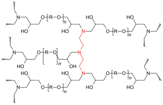 Durante el proceso, las cadenas de polímero se unen para formar estructuras de peso molecular a medida que crecen para crear una celosía que se extiende por toda el tamaño de la muestra . En esta condición, el sistema ha llegado al punto de gelación, es decir, el punto de que el sistema ha perdido la solubilidad y su viscosidad tiende al infinito. Las cadenas restantes aún libres continuarán unidos a los celos, espesándose hasta el final de la reacción química .[1]