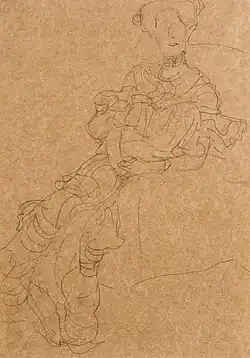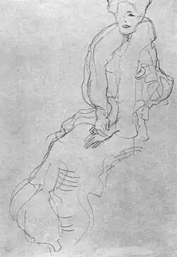 Todos los bocetos de Fritza Riedler muestran la estructura diagonal que se convertiría en característica del retrato final y también dejan claro que Klimt prestó especial atención a la caída del vestido y la postura, elementos importantes para el efecto que quería crear.[3]