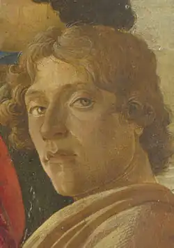 El historiador del arte Frank Zöllner discrepa de la identificación del modelo como Michele Marullo, pues ve un autorretrato de Botticelli al compararlo con el que aparece en la Adoración de los Magos.[7]