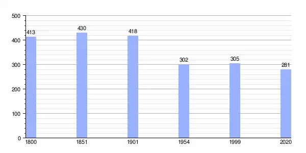 | Gráfica de evolución demográfica de Reuil entre 1800 y 2020 |