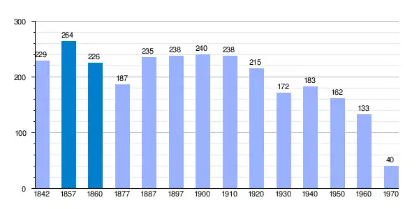 | Gráfica de evolución demográfica de Revilla de Campos[15] entre 1842 y 1970 |