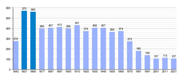 | Gráfica de evolución demográfica de Revilla del Campo[2] entre 1842 y 2021 |