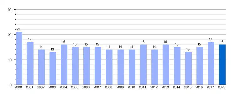 | Gráfica de evolución demográfica de Revillalcón entre 2000 y 2023 |
