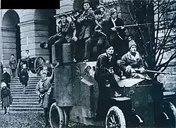 Los llamamientos de un miembro del comité central del Partido Social-Revolucionario a las unidades supuestamente afines para defender al Gobierno de Kérenski fracasaron.[130][120] La influencia del partido entre las tropas estaba desapareciendo y no era ya suficiente para garantizar el apoyo de las unidades de la capital al Gobierno.[131] Las bases del partido en la capital, trabajadores y soldados principalmente, no estaban dispuestos a alzarse en defensa del Gobierno de coalición con los partidos burgueses.[132]