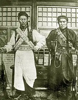 - ↑ Sando went to Mukden in Manchuria, where he received a telegram expressing the emperor's astonishment over Sando's inability to control the Mongols. The Amban was removed from office, and he was ordered to await an inquiry into his conduct. Chen Chungzu, Waimenggu jinshi shi [The recent history of Mongolia], Shanghai, 1926; repr. Taipei, 1965), bien 1, p. 13. The fall of the Qing saved him from further embarrassment, or worse.