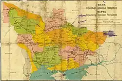 En la guerra de independencia de Ucrania o guerra soviético-ucraniana lucharon distintas facciones tras la Revolución de Octubre de 1917, y transcurre parte de la Primera Guerra Mundial, al que se añade el colapso del Imperio austrohúngaro y el Imperio ruso. La debacle de estos imperios tiene un gran efecto sobre el movimiento nacional ucraniano, surgiendo en el corto período de cuatro años, diferentes gobiernos y de diverso signo. Este periodo se caracteriza por el optimismo y la construcción nacional, aunque también por el caos y la guerra civil. Finaliza en 1921, con el territorio de la actual Ucrania dividido entre la Ucrania Soviética (RSS de Ucrania fue una república constituyente de la Unión Soviética) y la Segunda República Polaca, aunque con pequeñas regiones en Bielorrusia, Checoslovaquia y Rumanía.