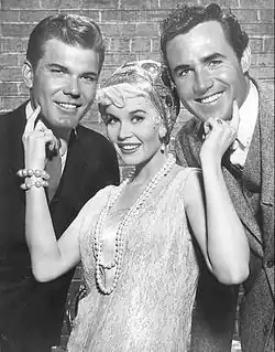 Rex Reason (der.) con los actores de The Roaring 20's Donald May y Dorothy Provine | ||