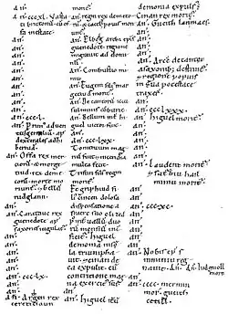 Annales Cambriae (s. X), en copia de un manuscrito del siglo XII.