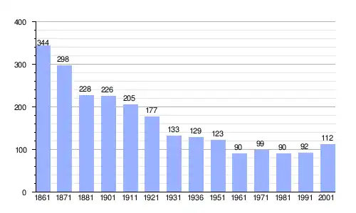 | Gráfica de evolución demográfica de Rhêmes-Notre-Dame entre 1861 y 2001 |