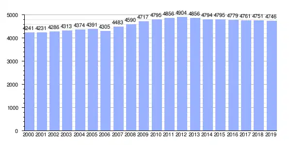 | Gráfica de evolución demográfica de Rianxo (lugar) entre 2000 y 2019 |