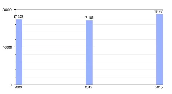 | Gráfica de evolución demográfica de Riaribes entre 2009 y 2015 |
