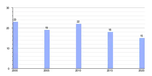 | Gráfica de evolución demográfica de Ribón (aldea) entre 2000 y 2020 |