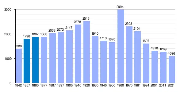 Gráfica de evolución demográfica de Ribarroja de Ebro[5]​ entre 1842 y 2021