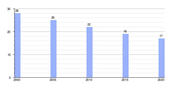 | Gráfica de evolución demográfica de Ribas de Miño (aldea) entre 2000 y 2020 |