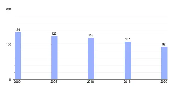 | Gráfica de evolución demográfica de Ribas de Miño (parroquia) entre 2000 y 2020 |