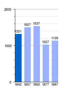 Según los censos de población de España, la evolución demográfica del concejo entre 1842 y 1887 fue la siguiente: