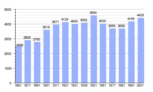 | Gráfica de evolución demográfica de Ricadi entre 1861 y 2001 |