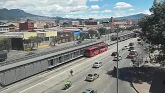 La estación de transferencia Ricaurte hace parte del sistema de transporte masivo de Bogotá llamado TransMilenio inaugurado en el año 2000.