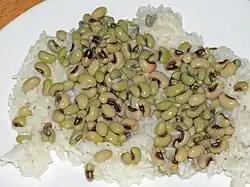 Rice and peas son un plato esencial en la gastronomía bahamesa, jamaicana, tobagotrinitense, barbadiense y otras áreas del Caribe anglófono. En las Bahamas, se le conoce como peas n' rice, de donde se surge la canción popular bahamesa Mamma don't want no Peas n' Rice and Coconut Oil (1932). Rice and peas se consume tradicionalmente (pero no exclusivamente) en el almuerzo dominical.[2] El plato está hecho con arroz y cualquier legumbre disponible, como frijoles, guandules o caupíes, la combinación de grano y una legumbre forman una proteína completa, como en el arroz con frijoles. El guandú está particularmente asociado con la Navidad. Los guandules se hierven con semillas de pimienta de Jamaica y ajo hasta que estén tiernos. Luego se agrega chile bonney, tomillo, cebollín y/o cebolla, jengibre rallado y leche de coco junto con el arroz y se deja hervir a fuego lento hasta que estén cocidos.