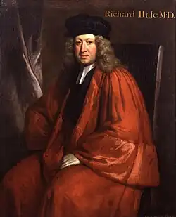 - ↑ Andrews, Jonathan (1990). «A Respectable Mad-Doctor? Dr Richard Hale, F.R.S. (1670-1728)». Notes and Records of the Royal Society of London 44 (2): 178. ISSN 0035-9149. JSTOR 531606. PMID 11622351. S2CID 41124924. doi:10.1098/rsnr.1990.0017.
