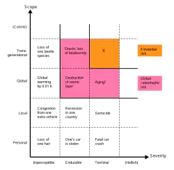 Los riesgos de sufrimiento, o riesgos de sufrimiento astronómico futuro, o riesgos-s, son riesgos que implican una cantidad astronómica de sufrimiento, mucho mayor que todo el sufrimiento que se ha producido en la Tierra.[2][3] A veces se consideran una subclase de los riesgos existenciales.[4]