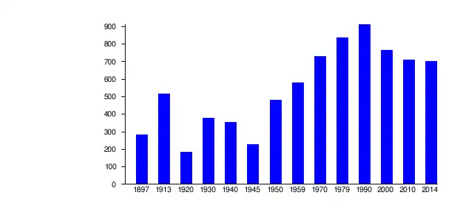 La población de la ciudad ha disminuido desde la independencia de Letonia en 1991 de 910 000 a 760 000, principalmente como resultado de la emigración por parte de la minoría rusa y la baja tasa de natalidad. Se estima que la población podría caer hasta en un 50 % para 2050.[43]