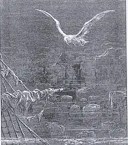 Navegando a la deriva y sufriendo la escasez de agua, la tripulación vuelve a depositar su ira en el marino, castigándole a colgar en su cuello al ave como señal de culpabilidad. Con el paso del tiempo, el barco tiene un encuentro fantasmal con la muerte y la vida-en-muerte. Estos juegan con los dados la vida de la tripulación, siendo la muerte-en-vida quien gana el alma del marinero.