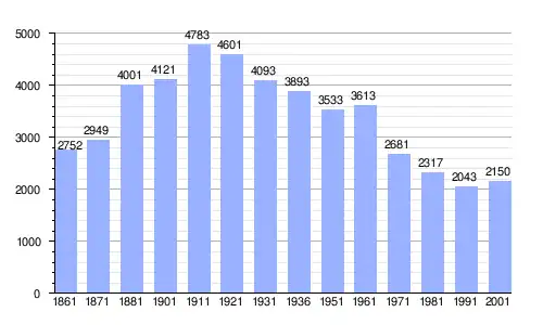 | Gráfica de evolución demográfica de Rio Marina entre 1861 y 2001 |