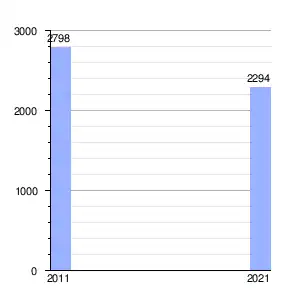 | Gráfica de evolución demográfica de Rio de Couros e Casal dos Bernardos entre 2011 y 2021 |