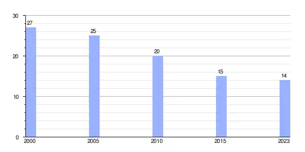 | Gráfica de evolución demográfica de Riobó entre 2000 y 2023 |