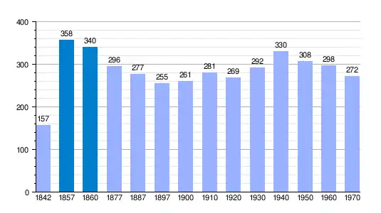 | Gráfica de evolución demográfica de Riocerezo[2] entre 1842 y 1970 |