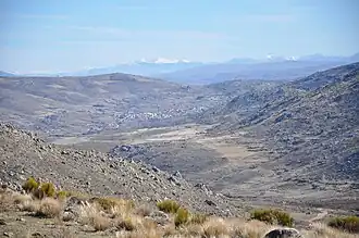Riofrío desde la sierra de la Paramera con la sierra de Guadarrama al fondo | ||||
