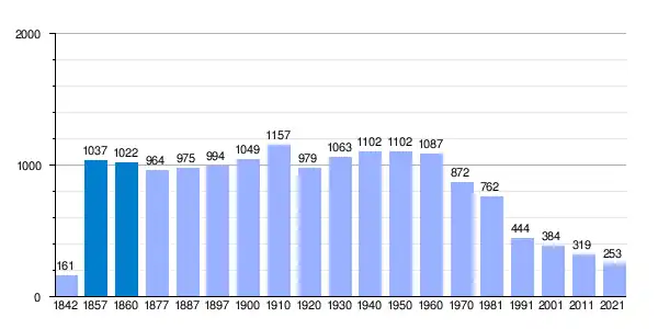Población de derecho según los censos de población del INE     Población de hecho según los censos de población del INEEntre el censo de 1857 y el anterior, crece el término del municipio porque incorpora a 495059 (Garrapatas), 495155 (Valleluengo) y 495167 (Villar de Farfón)[9]