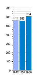 | Gráfica de evolución demográfica de Riovaldeiguña[2] entre 1842 y 1860 |