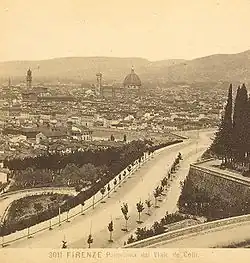 El recorrido estaba coronado por el Piazzale Michelangelo, terraza-mirador abierta hacia las vistas de la ciudad, destinada a convertirse en una de las imágenes más representativas de la ciudad en todo el mundo.[1]