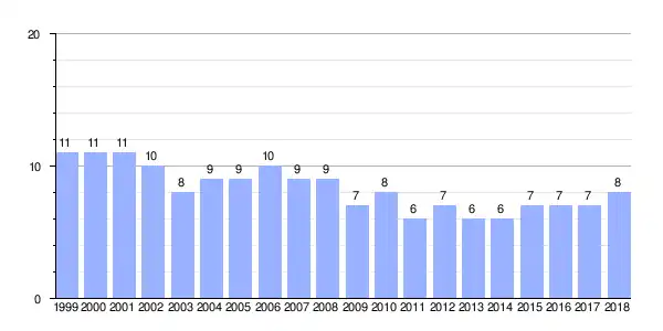 | Gráfica de evolución demográfica de Rivela entre 1999 y 2018 |